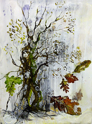 Melanie Williams is an encaustic wax artist from Bala in Mid Wales. She is inspired by the rugged beauty of Wales. Melanie says, “My medium of choice is encaustic wax I use hot and cold tools to create unique work. Hot wax, fire and pigments is magical. I find painting with wax has so many dimensions – individual layers of medium can be translucent and shiny or rugged and gnarled. I so enjoy the complexity of this medium.”