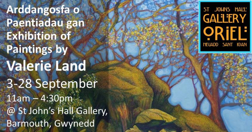 Valerie Land Exhibition in Barmouth One of our members, Valerie Land, has an exhibition at St. Johns Hall Gallery. Details of the Exhibition and preview below. Related