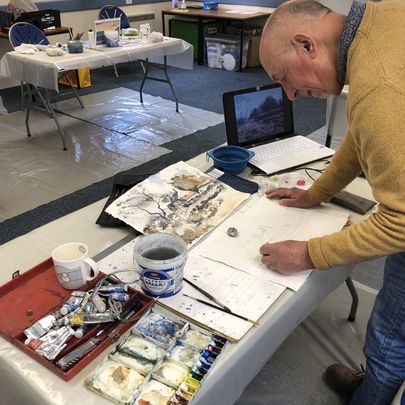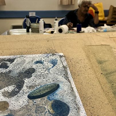 Paint days provide an opportunity to bring your own, ongoing work, and to carry on with it in good company, and get help from others.
