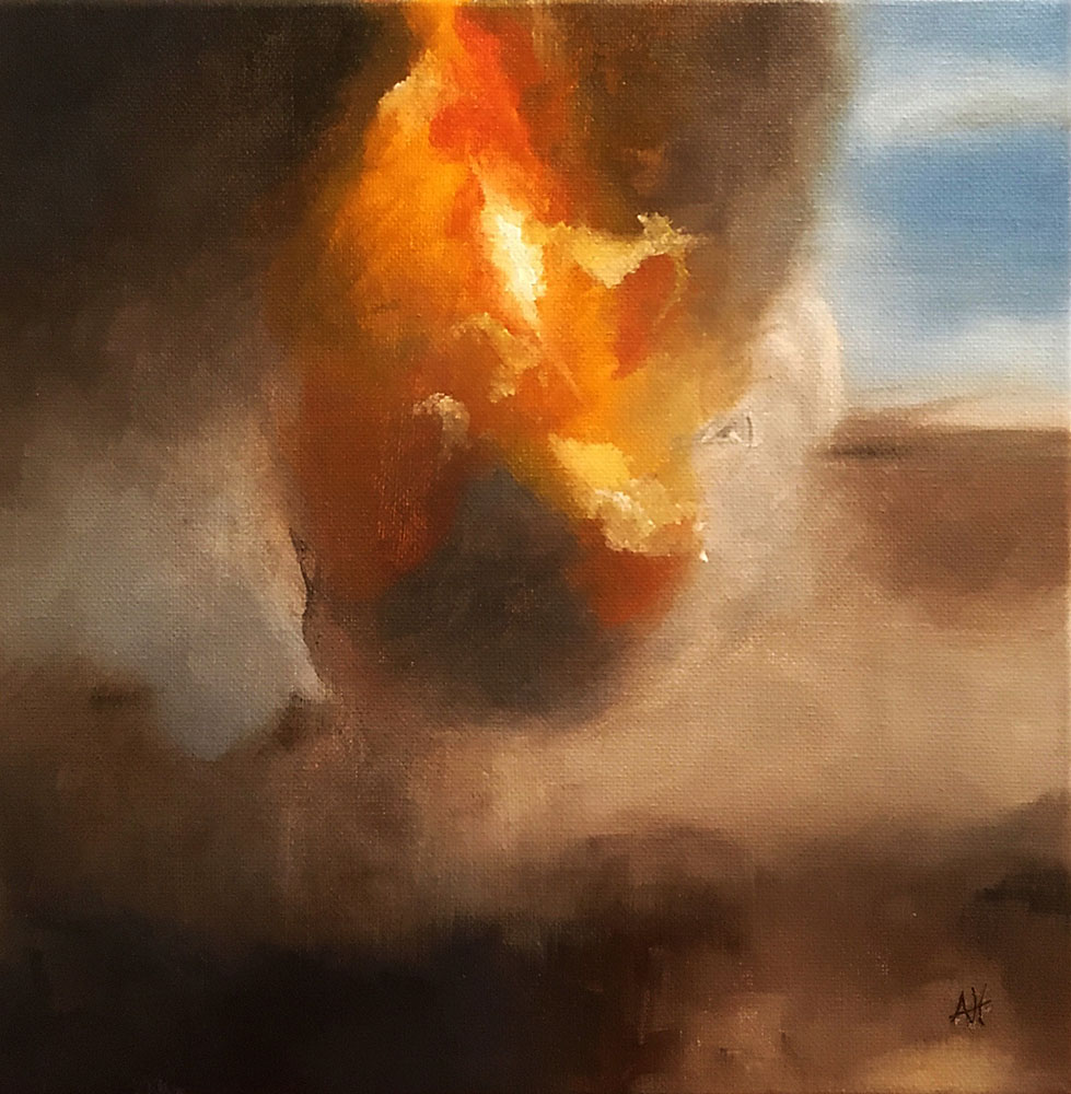 Oil on canvas, was painted on New Year’s Eve 2019 – COVID-19 Already With Us - Fire – 2020