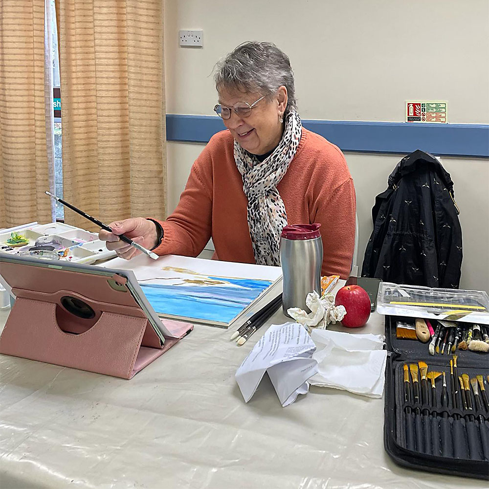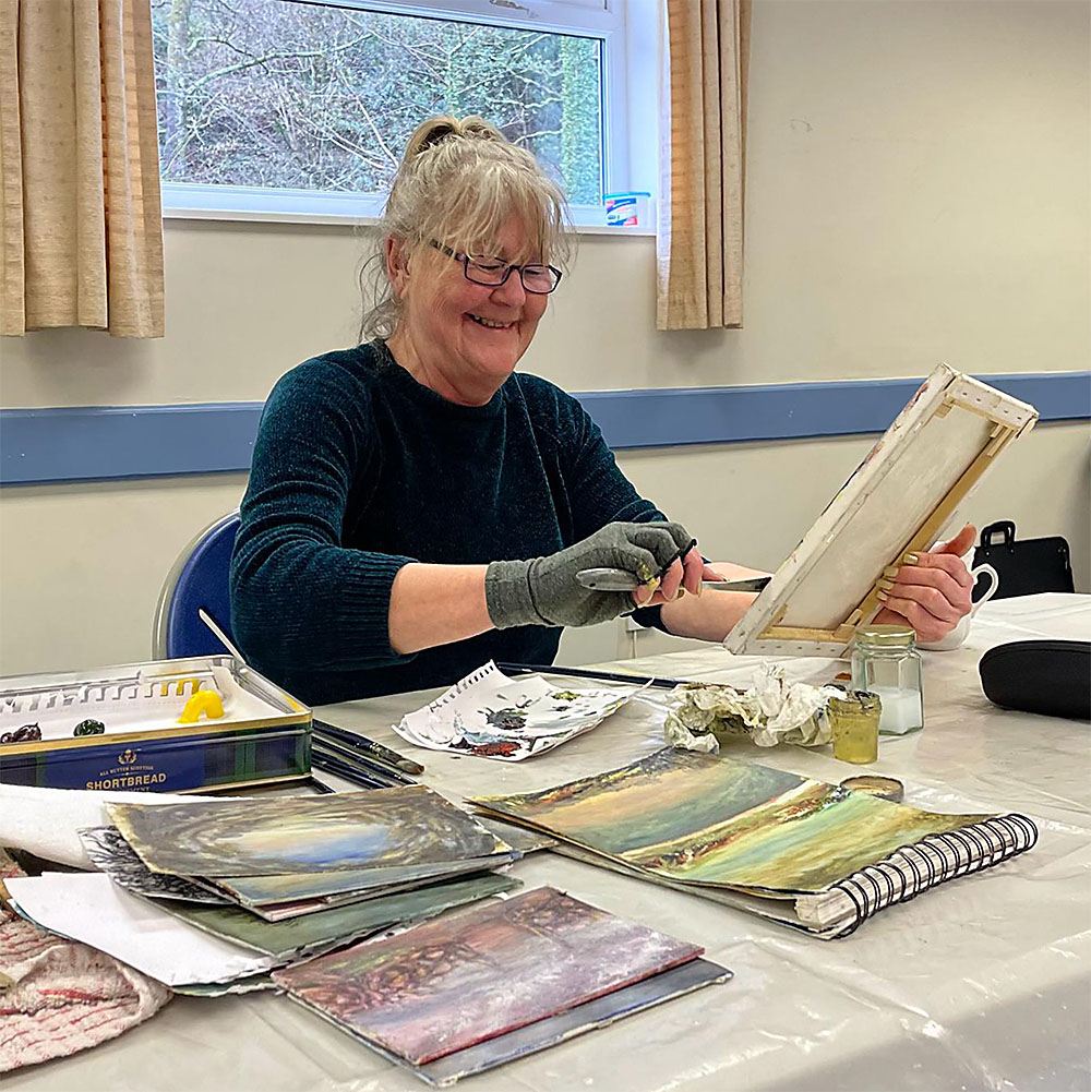 Paint days provide an opportunity to bring your own, ongoing work, and to carry on with it in good company, and get help from others.