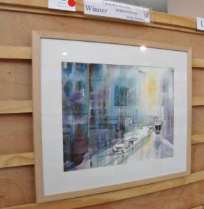 The judges for the competition theme ‘Last Light’, Nick and Kate Coldham artist and proprietors of ArtWorks, Aberdyfi. The winner is ‘Last Light’ by Glenys Lawson’. Highly commended goes to ‘Mawddach Sunset’ by Huw Lewis-Jones, ‘Llyn Peninsula’ by Jean Napier and ‘Purple Reverie’ by Valerie Land.