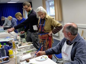 The workshop will involved participants creating art works using different tools such as business cards, sticks and string etc. as well as the more conventional approaches of brushes and knives.